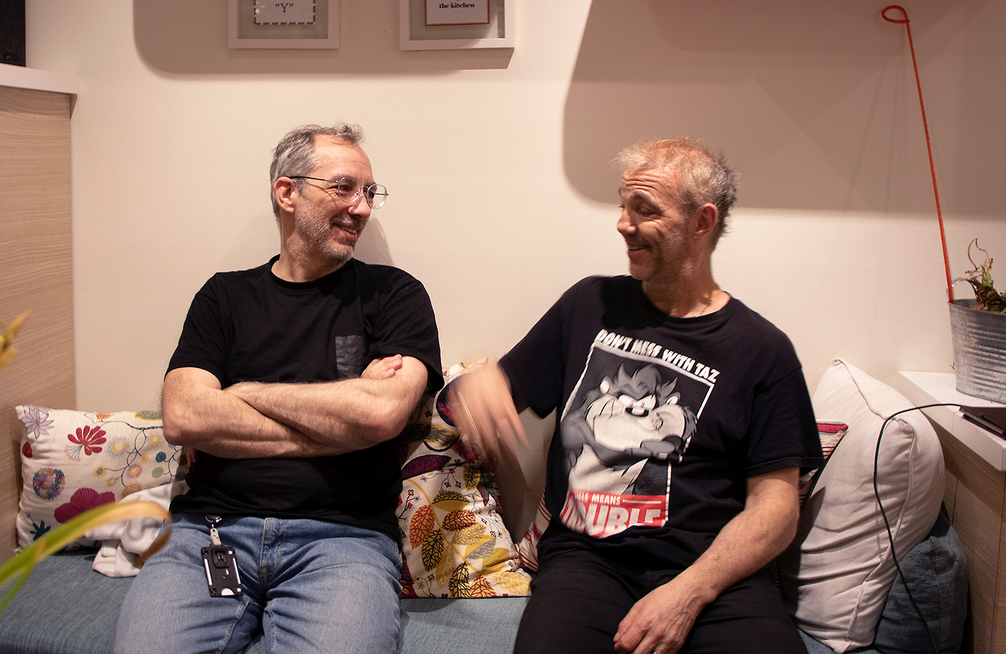 Hormonet oxytocin utsöndras mer när man sjunger och spelar ihop än när man pratar med varandra. Det ger lugn, dämpar ångest och lindrar smärta. Mikael Bjursen och Jakob Bjerke bildar tillsammans ett av Sveriges alla hobbyband som förhoppningsvis ska få en tredje medlem.